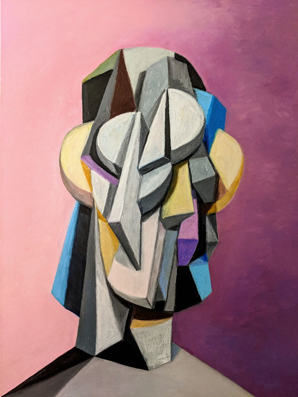 "Cubist Portrait (Purple)" 40 x 30 inches. Oil and oil pastel on canvas