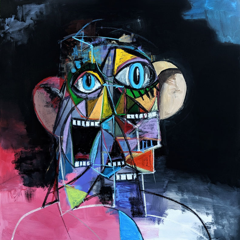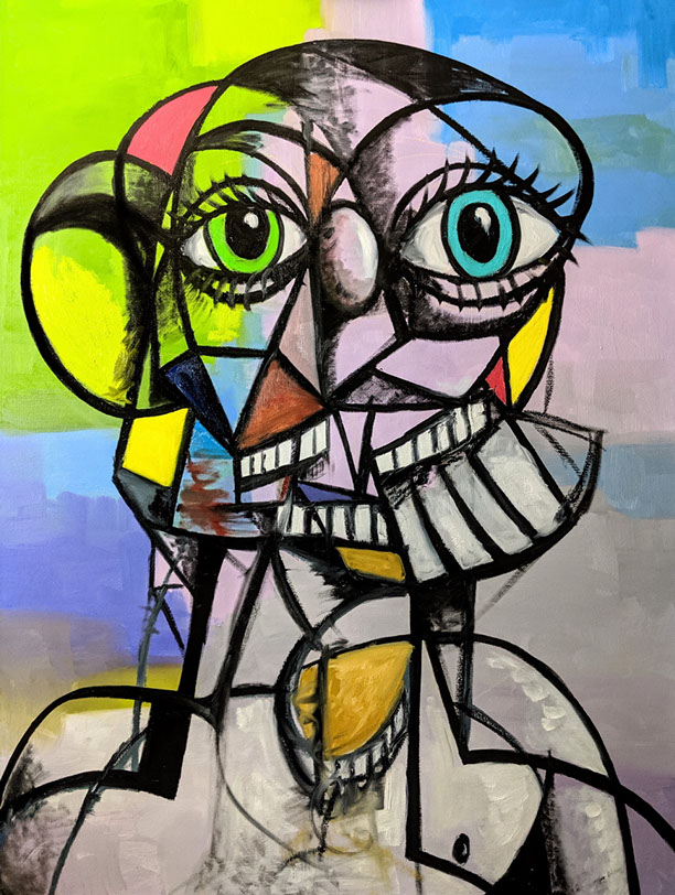"Cubist Portrait (Purple)" 40 x 30 inches. Oil and oil pastel on canvas