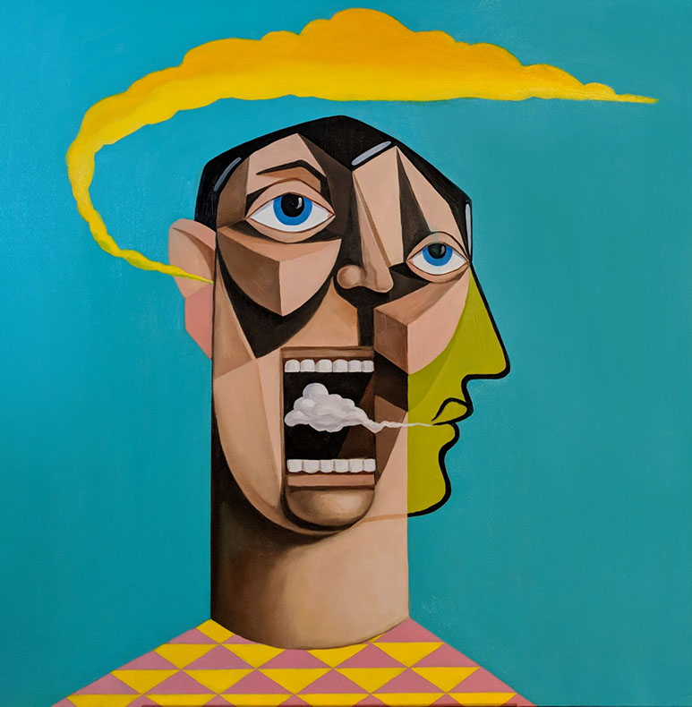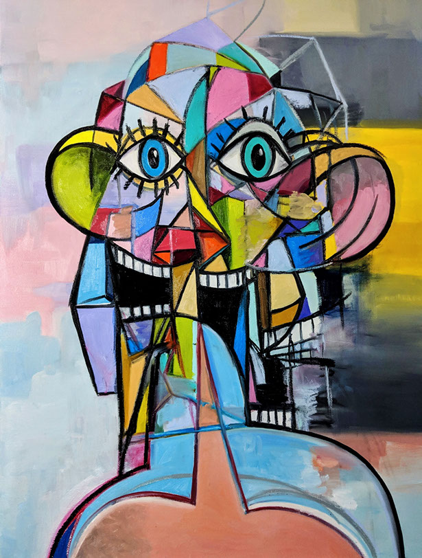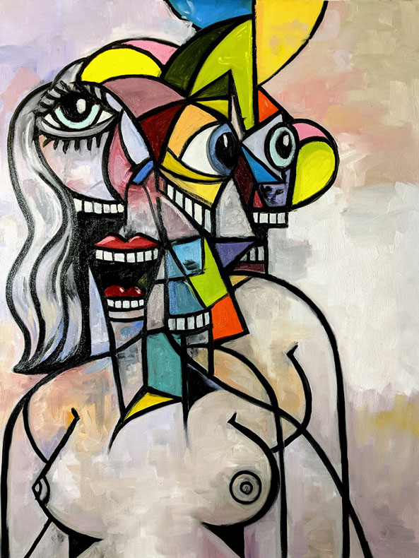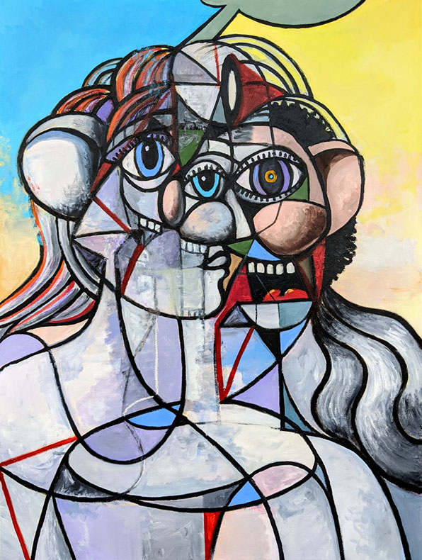 "Cubist Marriage To Cuckold" 48 x 36 inches. Acrylic and oil on canvas