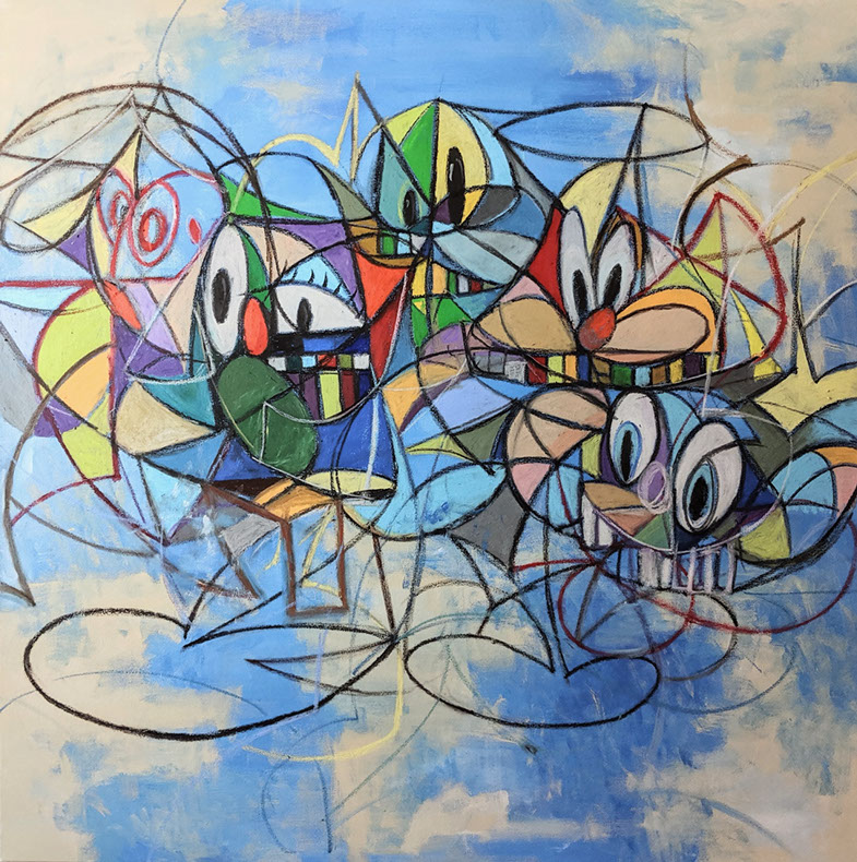 "Headspace Between" 36 x 36 inches. Acrylic, charcoal, and pastel on canvas