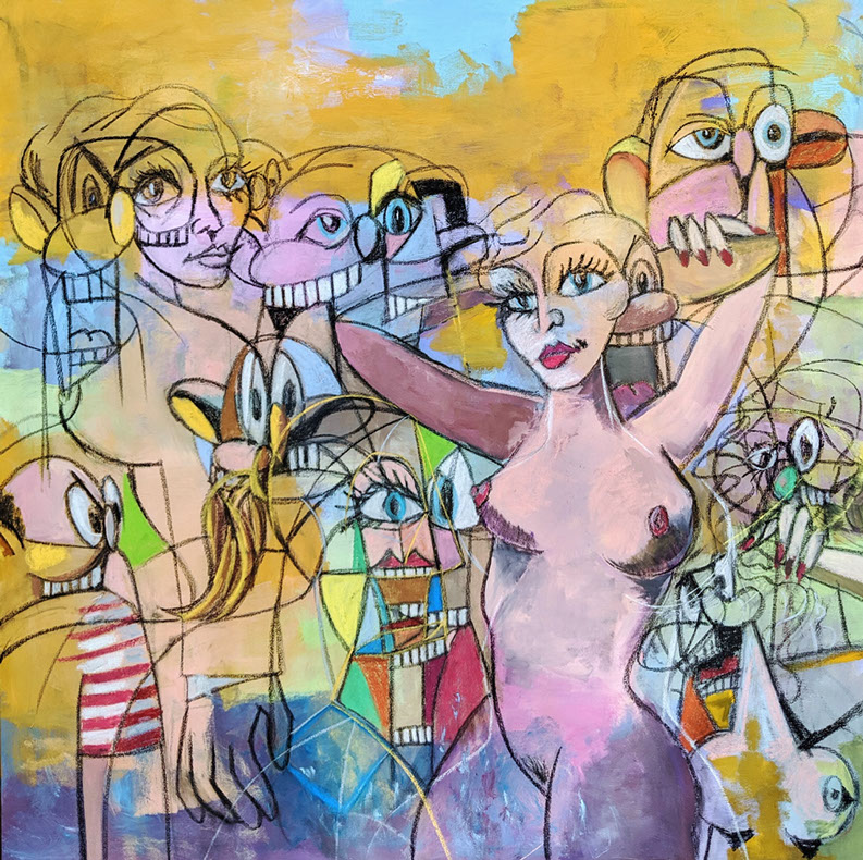 "Franks Wild Years" 36 x 36 inches. Oil, oil pastel, and pigment stick on canvas
